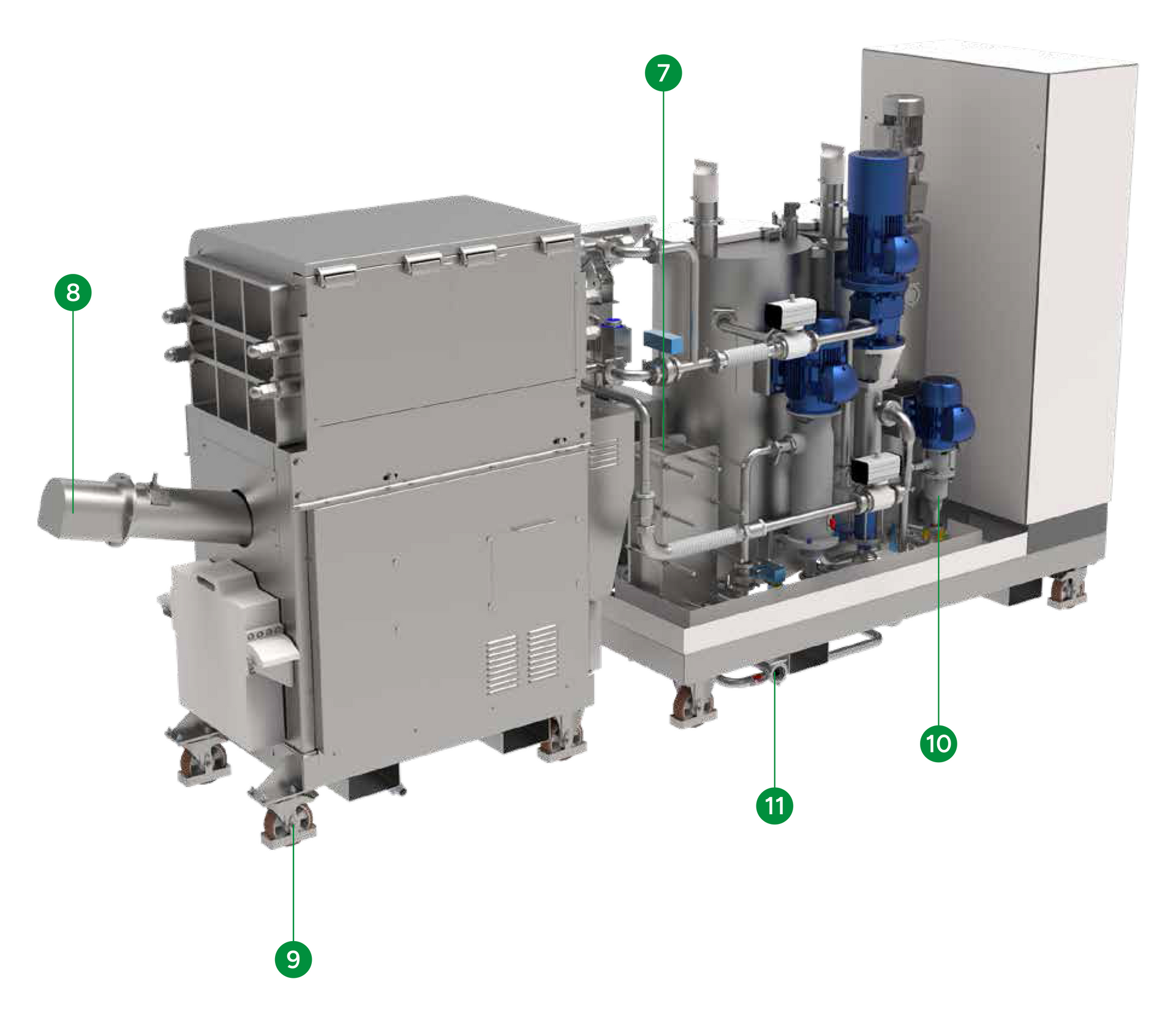 Il sistema exoos è equipaggiato con 3 pompe monovite, senza necessità di utilizzare pompe esterne.